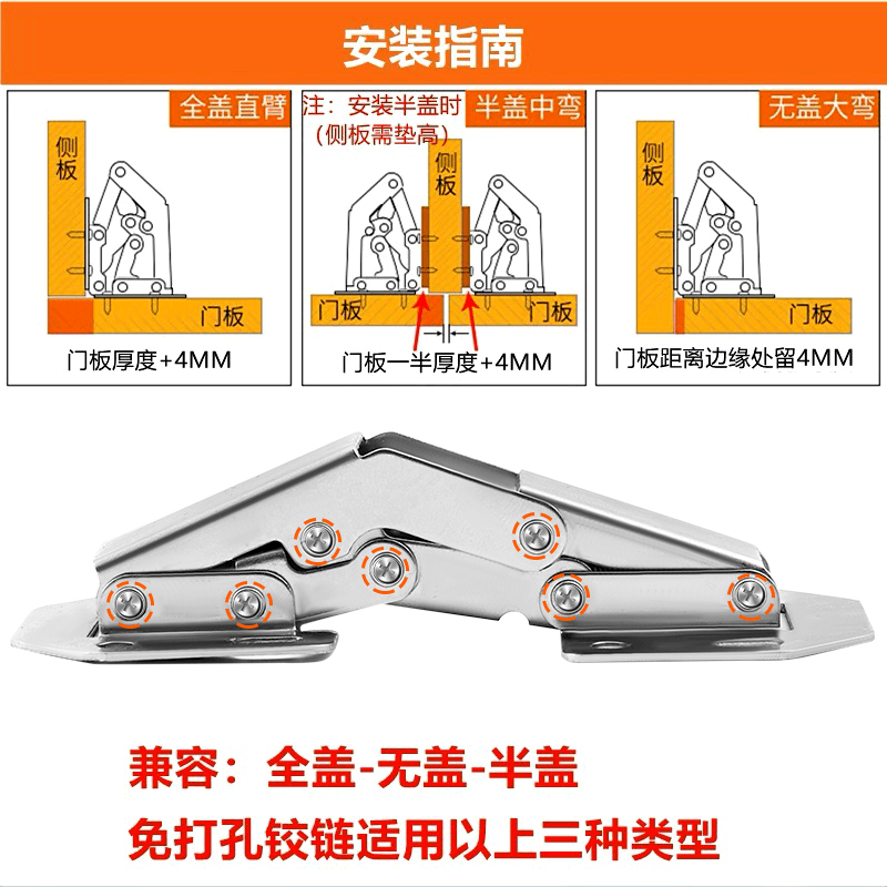 Hinge Full Collection Damping Buffer Folding Wardrobe Door Hinge Spring Cabinet Hardware Accessories No Drilling Cabinet Door Hinge quantity