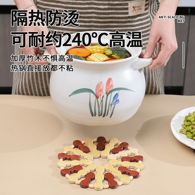 Household Bamboo Anti-Scald Heat-Resistant Sand Pot Mat Vegetable Mat Insulation Mat Dining Table Mat Bowl Mat Tea Cup Mat Plate Mat Table Mat quantity
