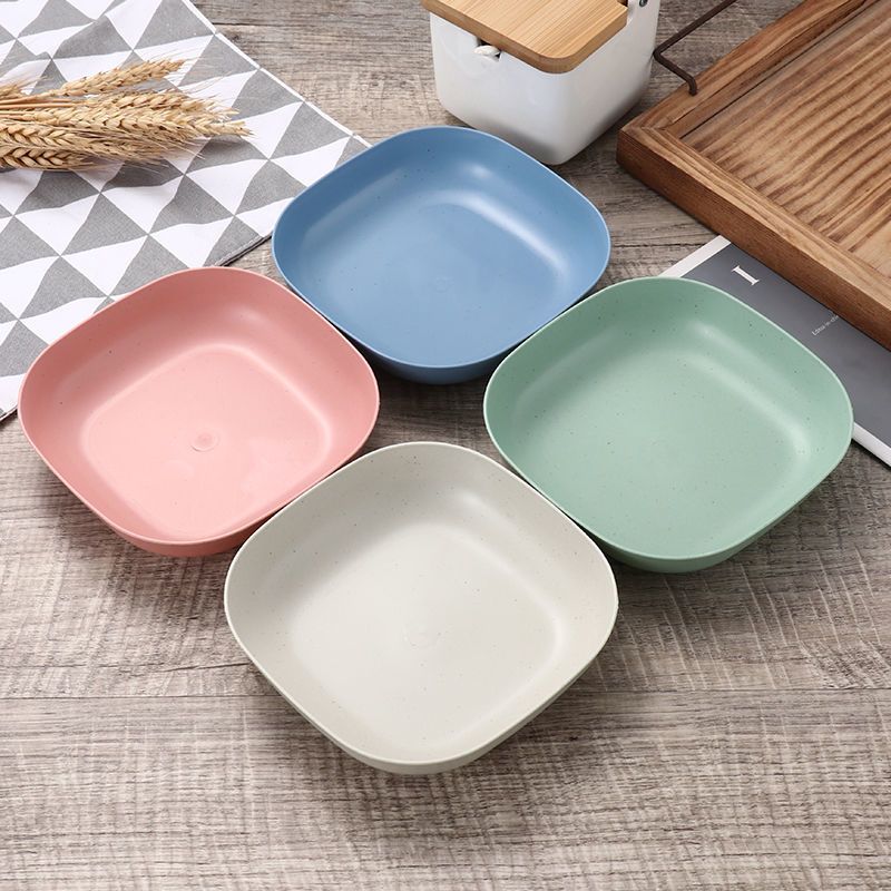 طبق بصاق عظام بدون مواصفات - أخضر - طبق مربع عميق - عبوة من 4