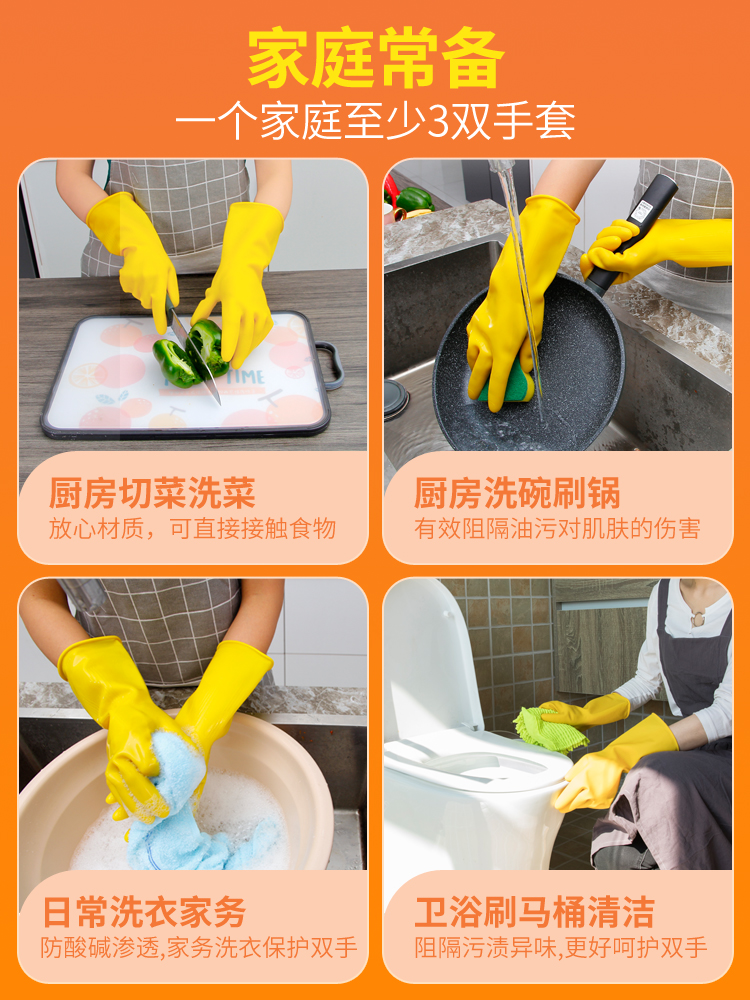 كمية Household Gloves for Dishwashing Women's Kitchen Waterproof Wear-Resistant Durable Labor Protection