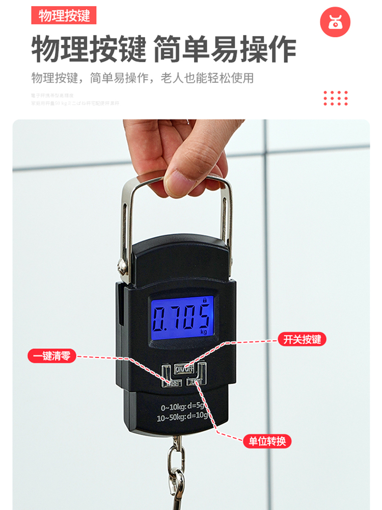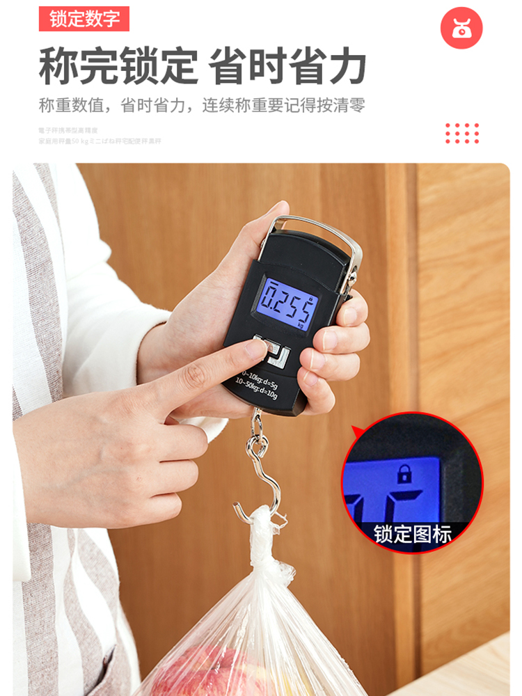 Household Mini Electronic Scale Portable High Precision Spring Scale for Express Delivery and Luggage quantity