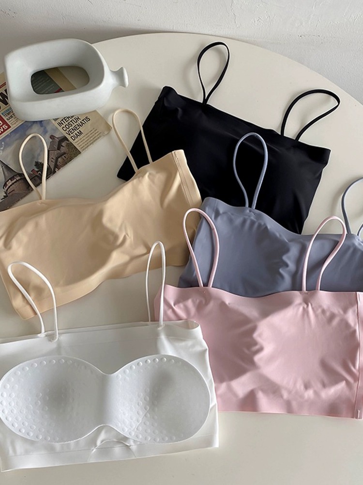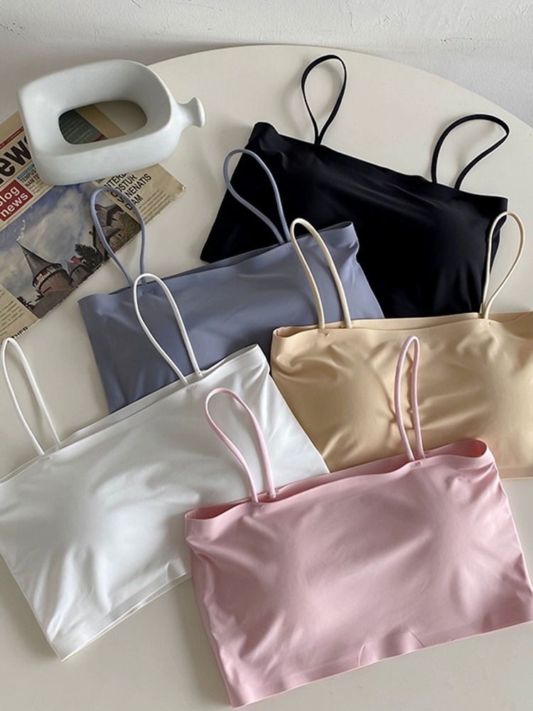 كمية Ice Silk Camisole Women's Inner Wear Anti-Slip Chest Pad One-Piece Tube Top Beautiful Back Underwear Bra Summer Thin