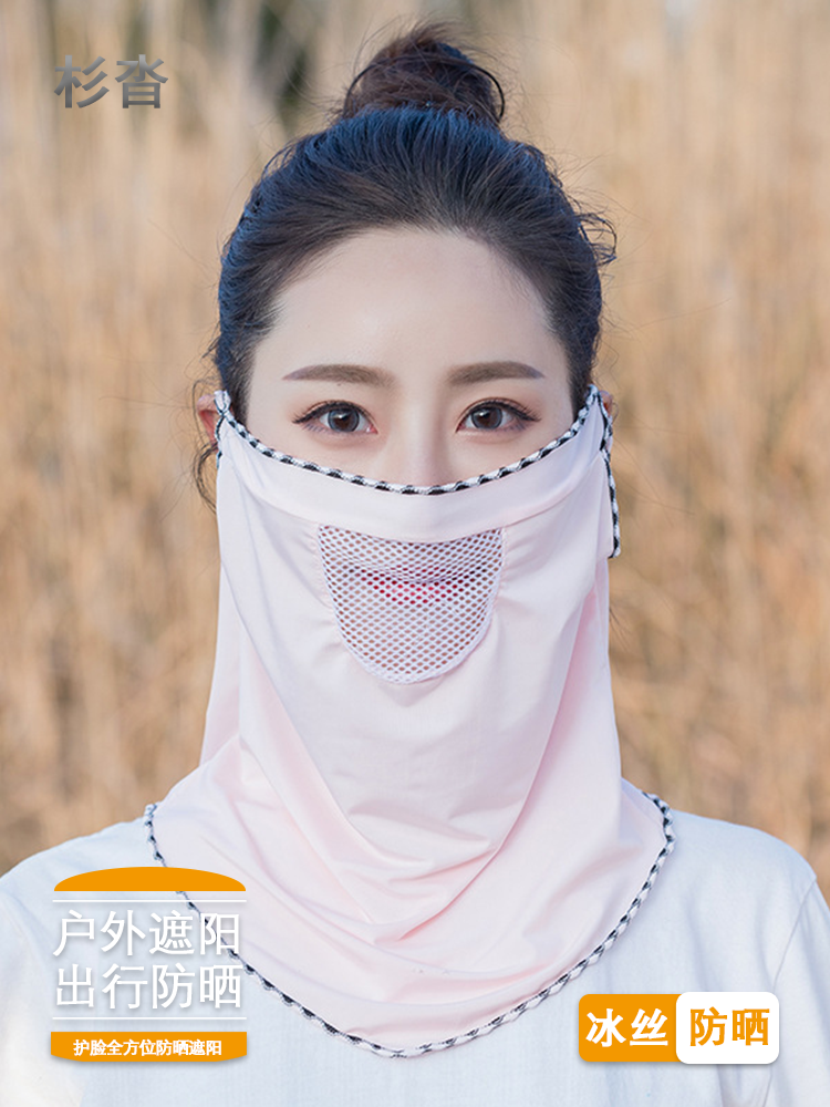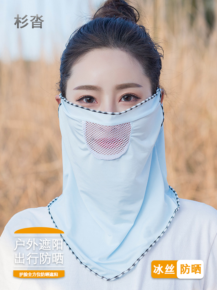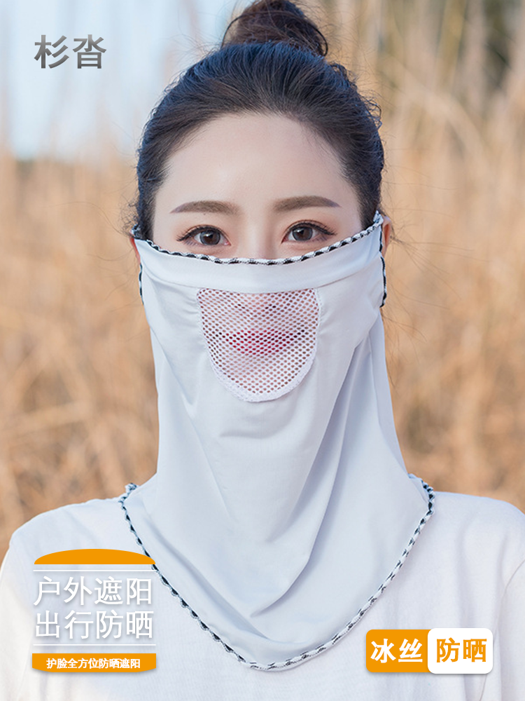 كمية Ice Silk Sun Protection Breathable Face Mask Summer Face Veil Neck Scarf Hanging Ear Neck Cover Sunshade Towel Headscarf