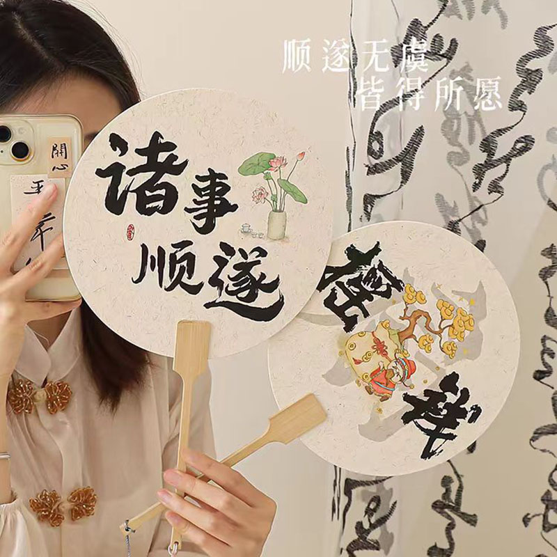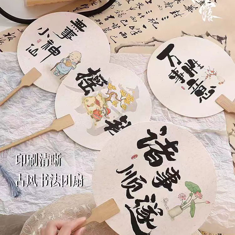 INS Ancient Style Round Fan Portable Summer Small Round Fan New Chinese Style Cultural Creative Book Fair Tide Creative Hanfu Photography quantity