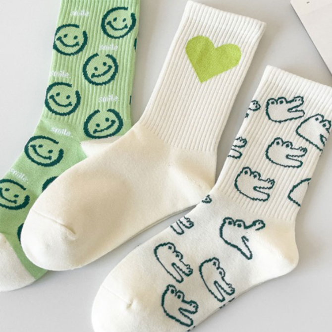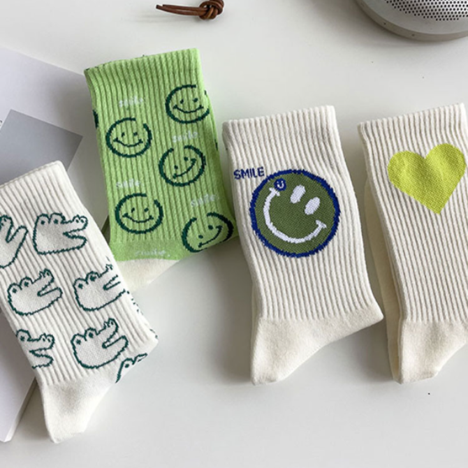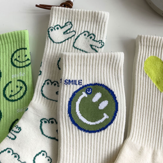 كمية Japanese Fresh Green Cute Mid-Calf Cartoon INS Trend Sports Style