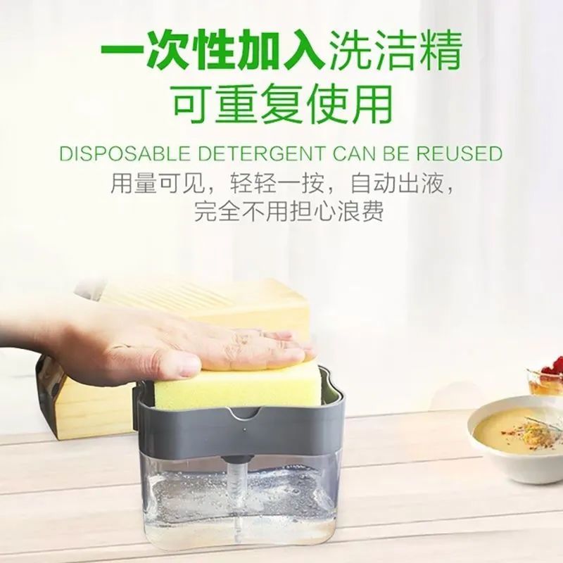 كمية Kitchen Dishwashing Liquid Automatic Dispenser Sponge Cleaning Brush Dishwashing Brush Pot Cleaning Artifact Press Soap Dispenser