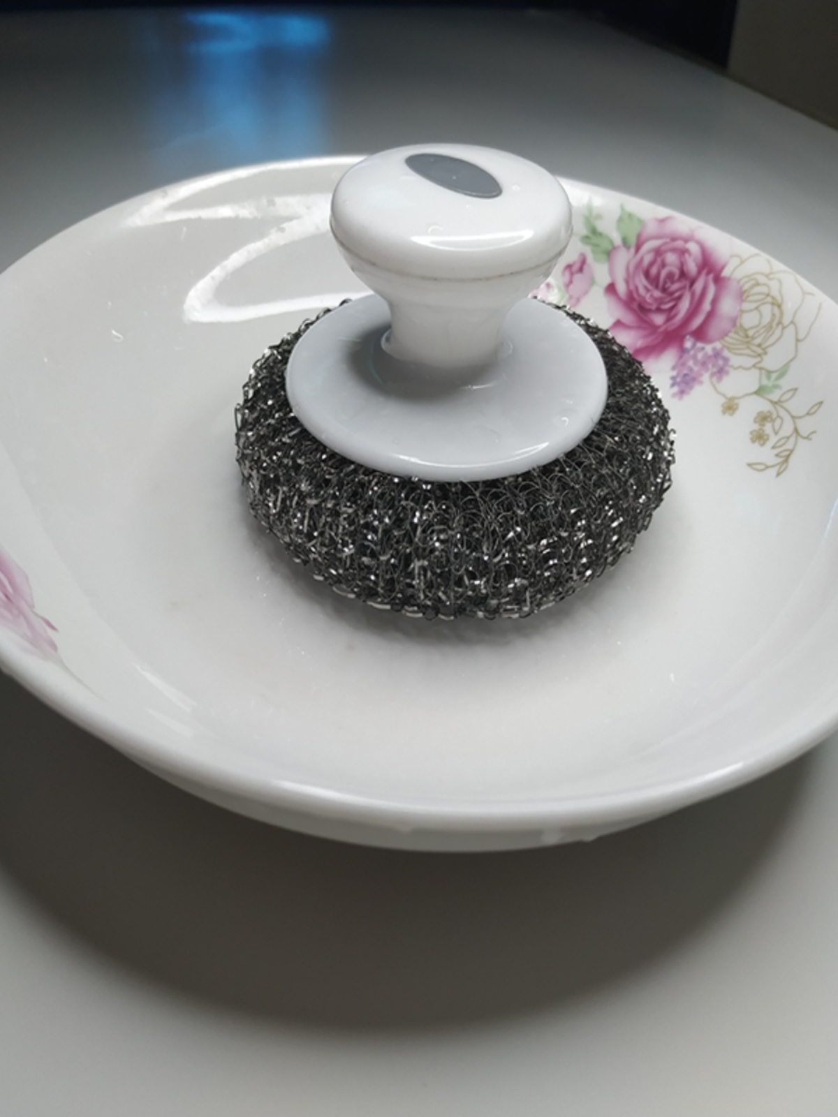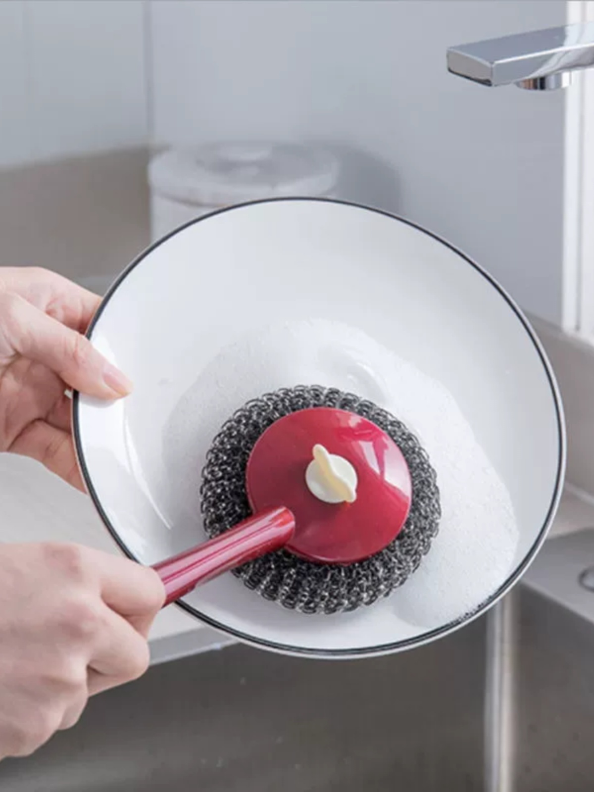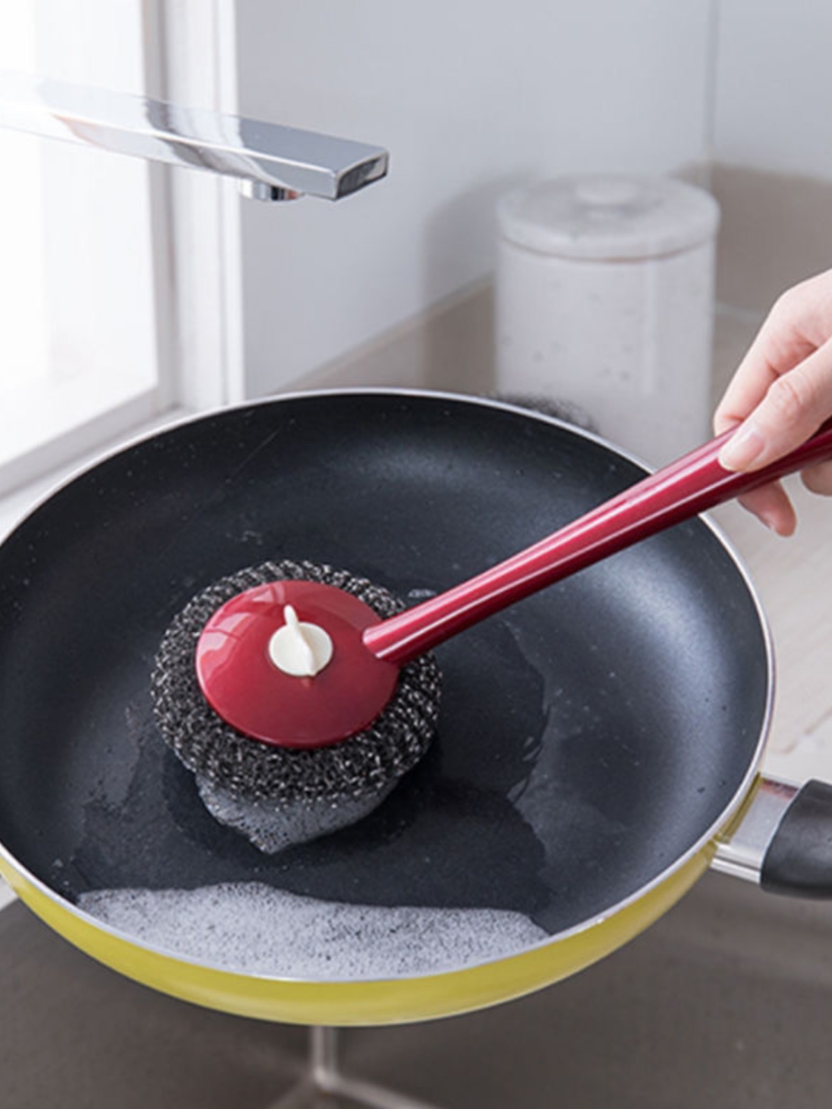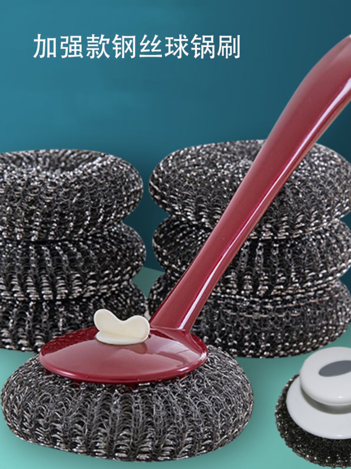 كمية Kitchen Household Stainless Steel Cleaning Ball Rust-Free Non-Shedding Steel Wool Pot Brush Long Handle