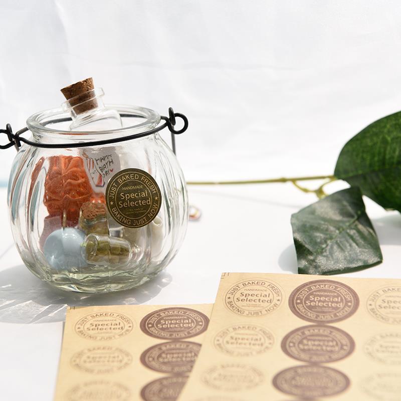 كمية Kraft Paper Adhesive Sealing Stickers Journal Round Stickers DIY Decoration Korean Envelope Handmade Baking Stickers