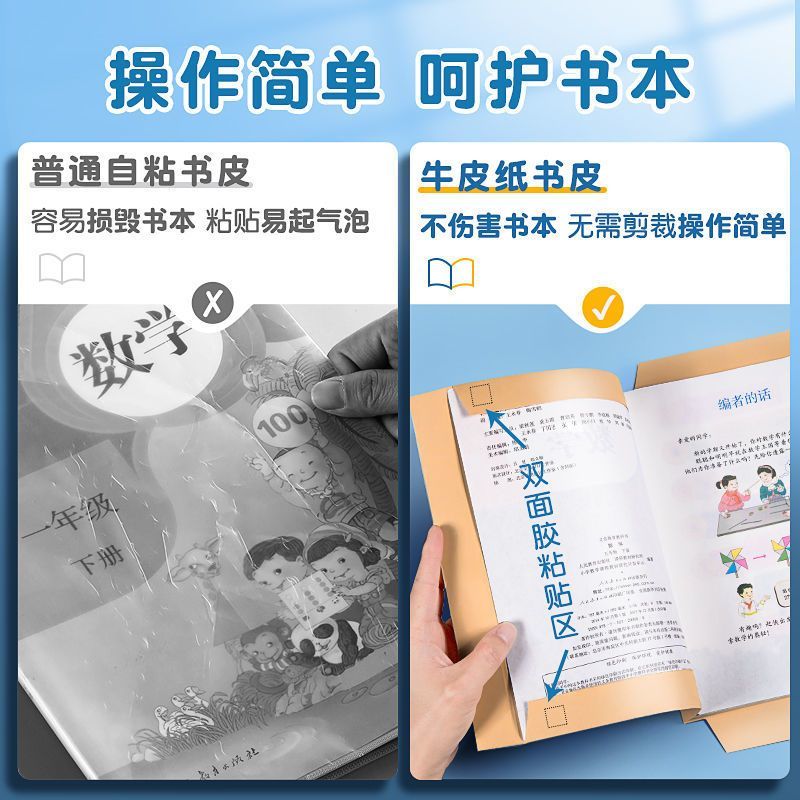 كمية Kraft Paper Book Cover Book Sleeve Kraft A4 Thick 16K Primary School First Grade Book Cover Film Notebook Full Set