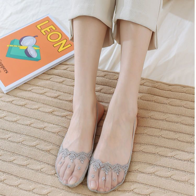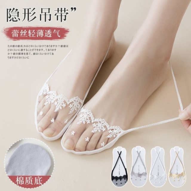 كمية Lace Embroidered Invisible Socks for Women, Summer Thin Non-Slip High Heel Sock Half Sole
