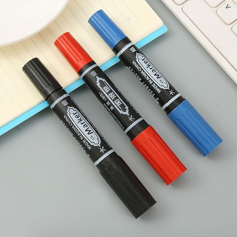 كمية Large Double-Headed Oil-Based Marker Black Marker Double-Headed One Thick One Thin Waterproof Non-Fading Flat Head Large Capacity Pen