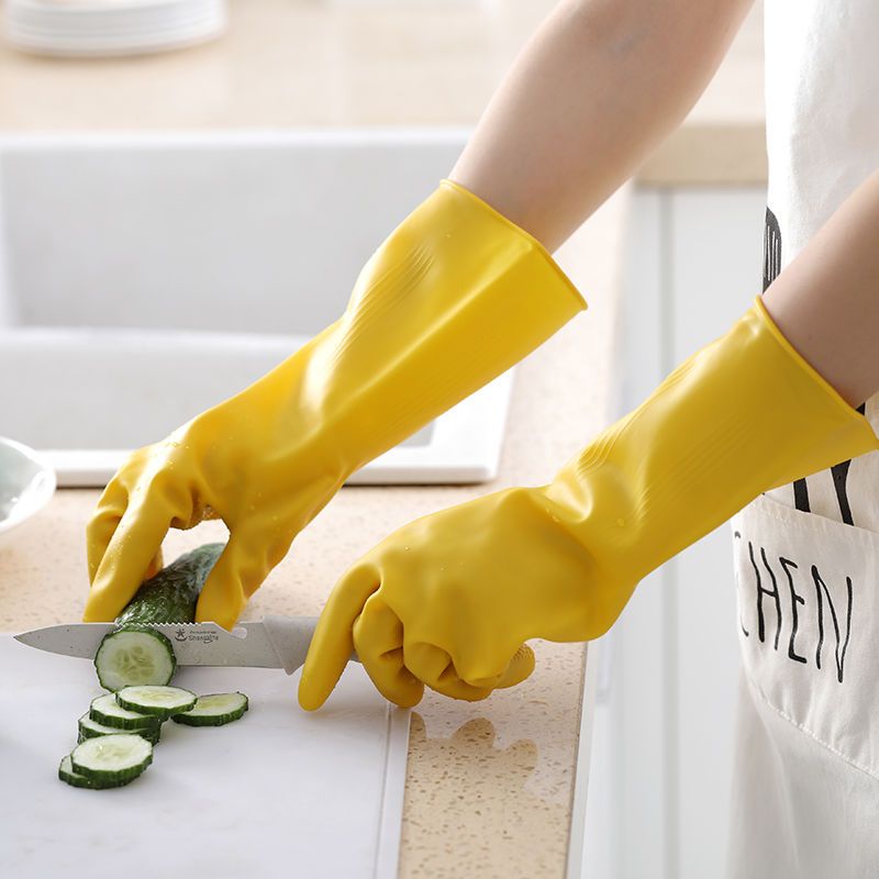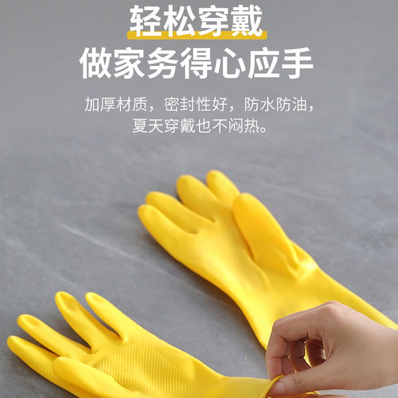 كمية Latex Gloves Thickened Wear-Resistant Waterproof Dishwashing Gloves Household Kitchen Industrial Labor Protection Rubber Non-Slip