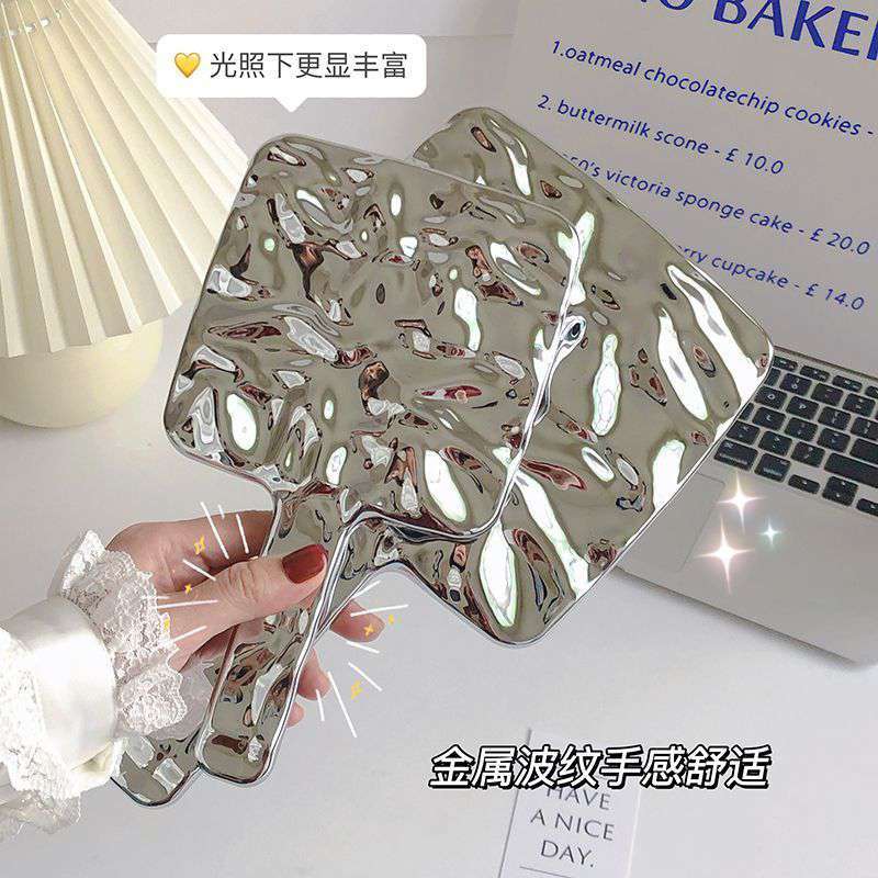 كمية Makeup Mirror Handheld Mirror Princess Style Handheld Mirror High-End Retro Dormitory Household Handle Round Large Cute