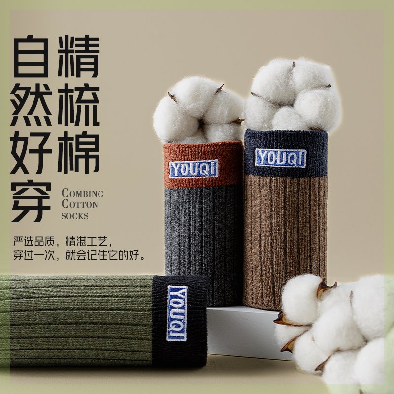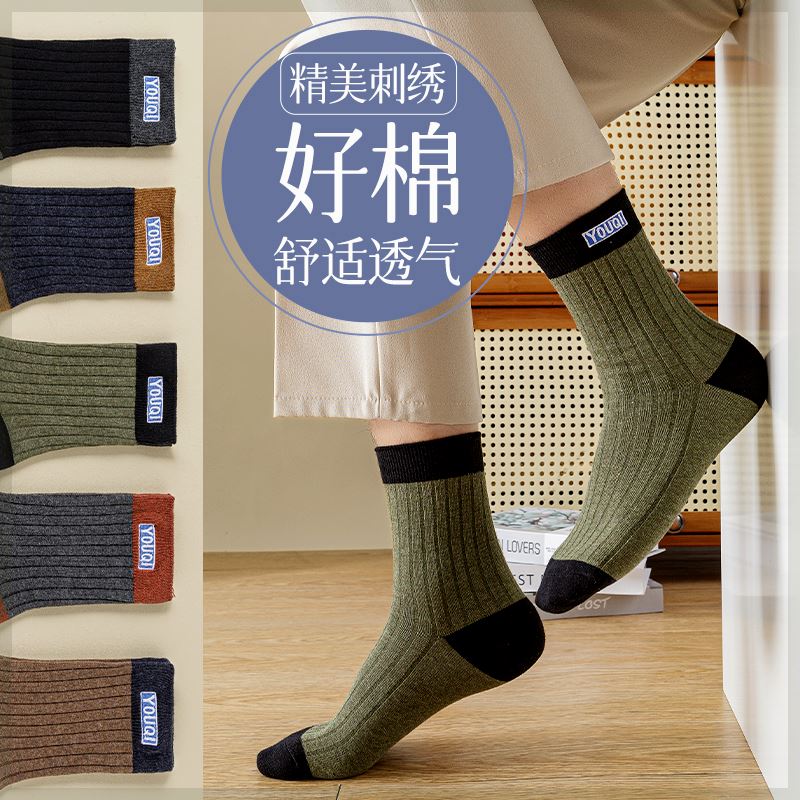 كمية Men's Mid-Calf High-Quality Cotton Odor-Resistant Socks, Breathable and Durable