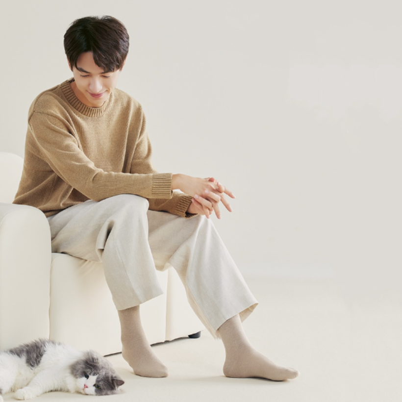 كمية Men's Socks Spring Autumn Mid-Calf Cotton Antibacterial Odor-Resistant Black Warm Long Socks for Autumn and Winter