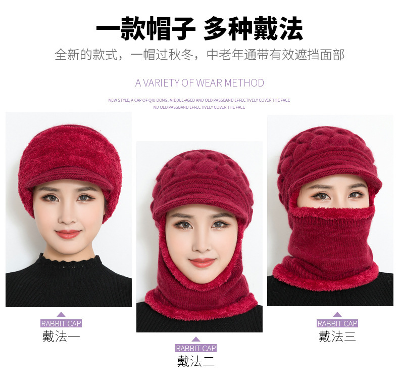 كمية Middle-Aged and Elderly Women's Hats Autumn and Winter Mom Wool Hats Neck Warmer Integrated Thickened Winter Windproof Warm Mask