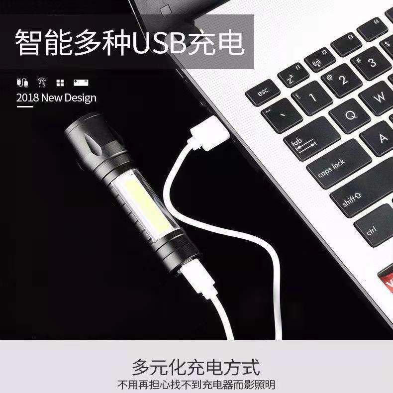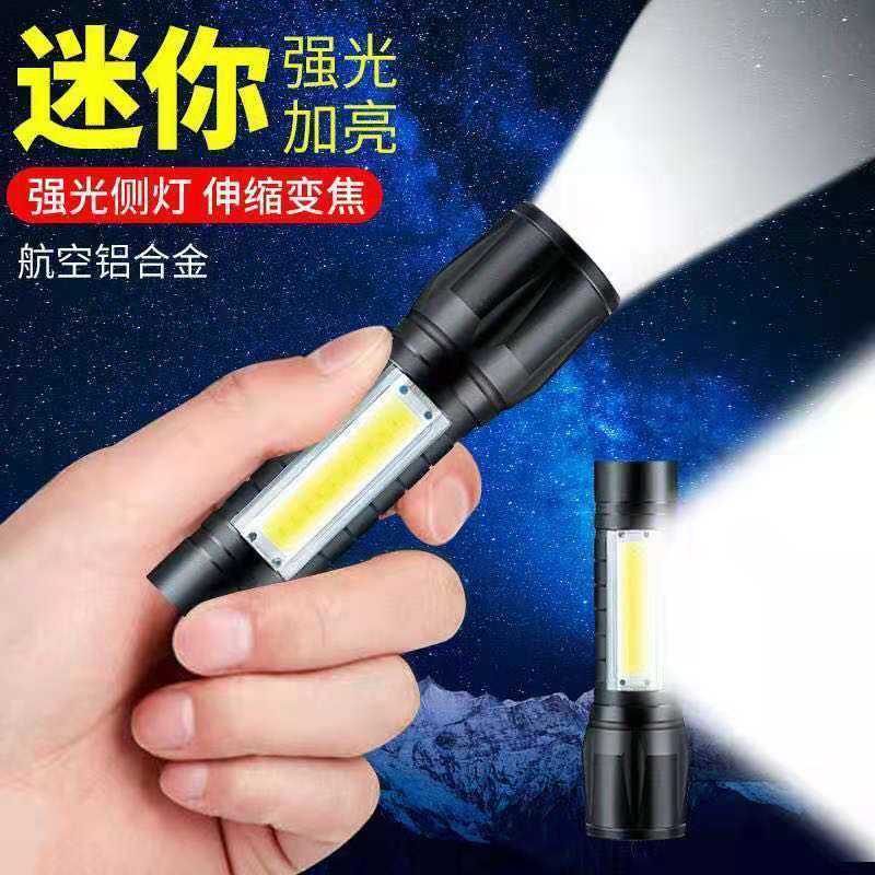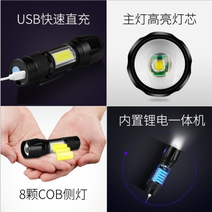 مصباح يدوي - معدني 513 - مشبك - ضوء جانبي - [تكبير صغير أسود شحن مباشر + حبل ذيل + كابل بيانات]