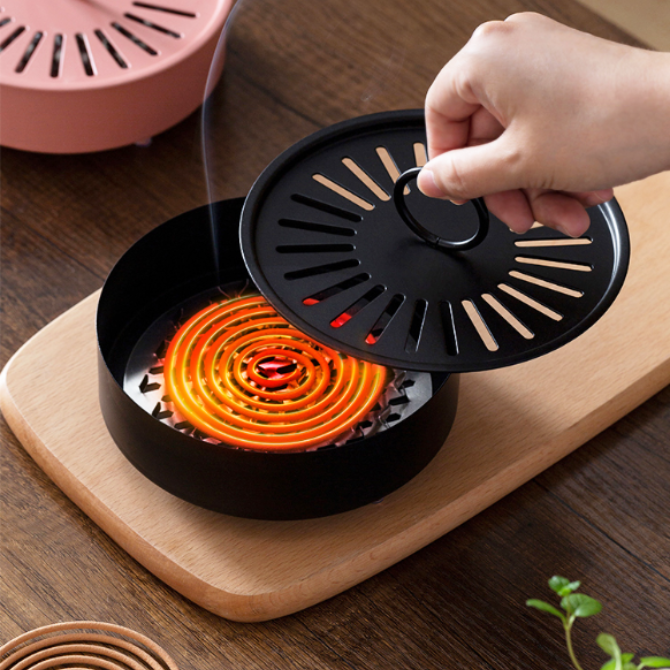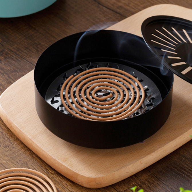 كمية Mosquito Coil Holder, Household 2024 New Model, Fireproof and Heat-Resistant Mosquito Coil Stand, Stainless Steel with Lid