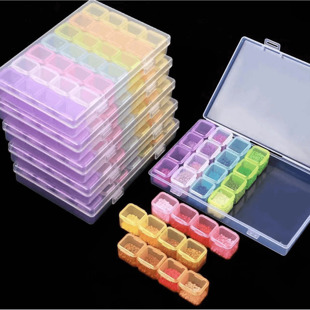 صندوق مجوهرات شفاف متعدد الأقسام - 28 قسم ملون - 3 قطع