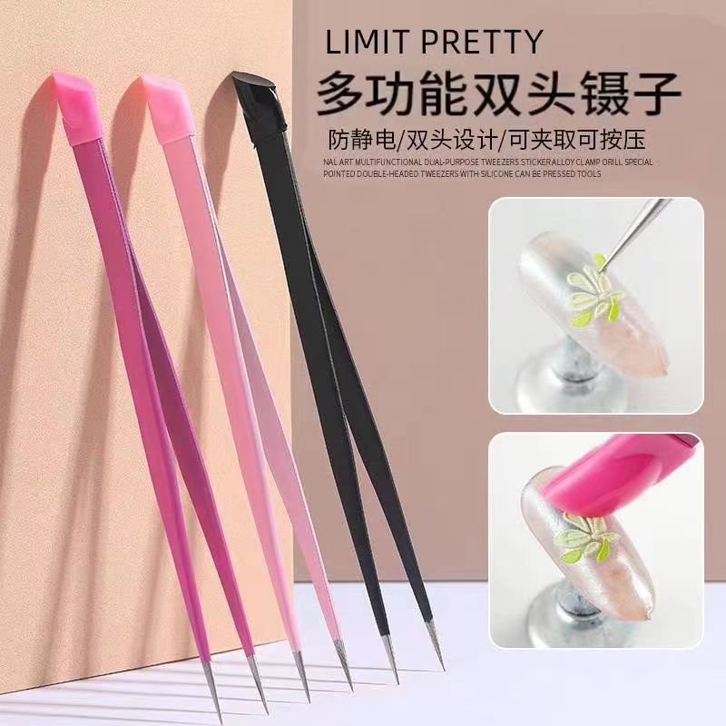 Multifunctional Double-Head Tweezers Precision Silicone Gem Grabber Jewelry Embossing Stainless Steel Nail Art Tool quantity
