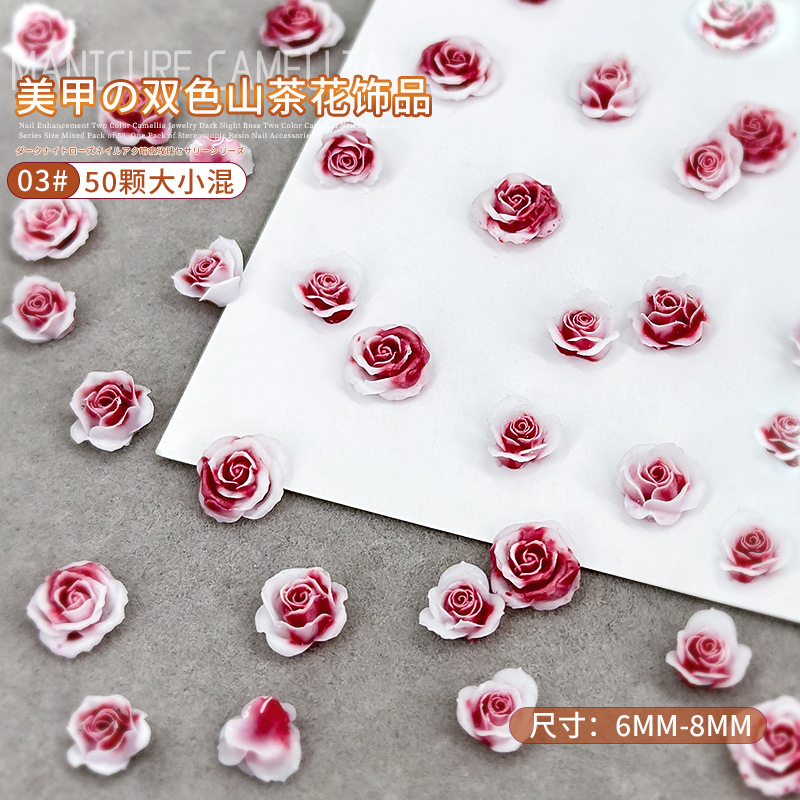 Nail Art Dual Color Camellia Accessories New Retro Dark Night Red Rose Resin Nail Decoration quantity
