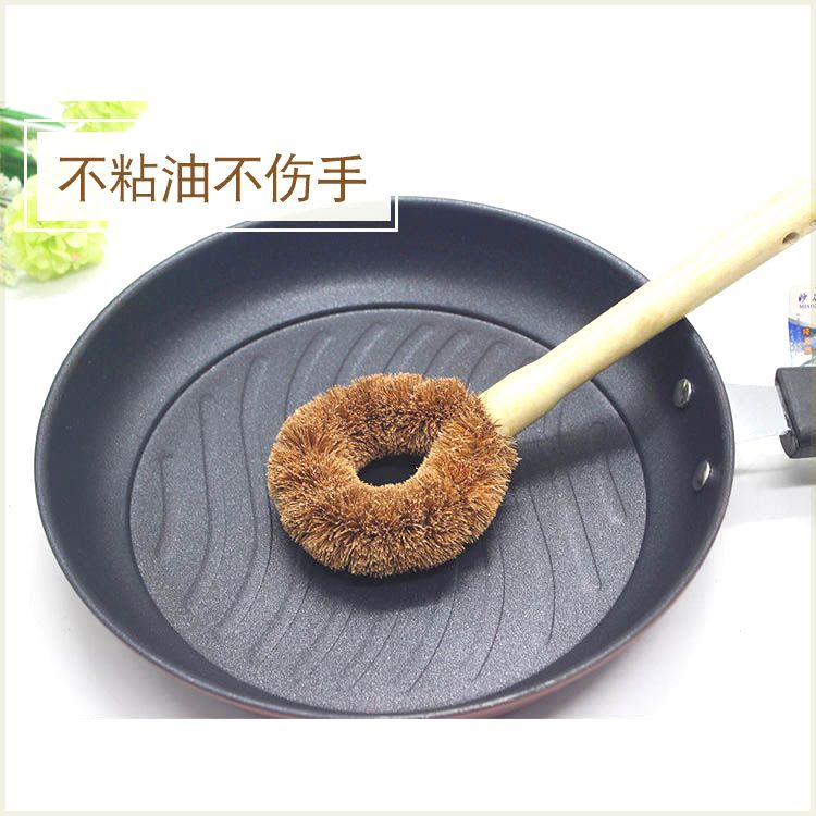 كمية Natural Coconut Palm Pot Brush Long Handle Wooden Handle Non-stick Oil Brush Kitchen Washing Pot Tool