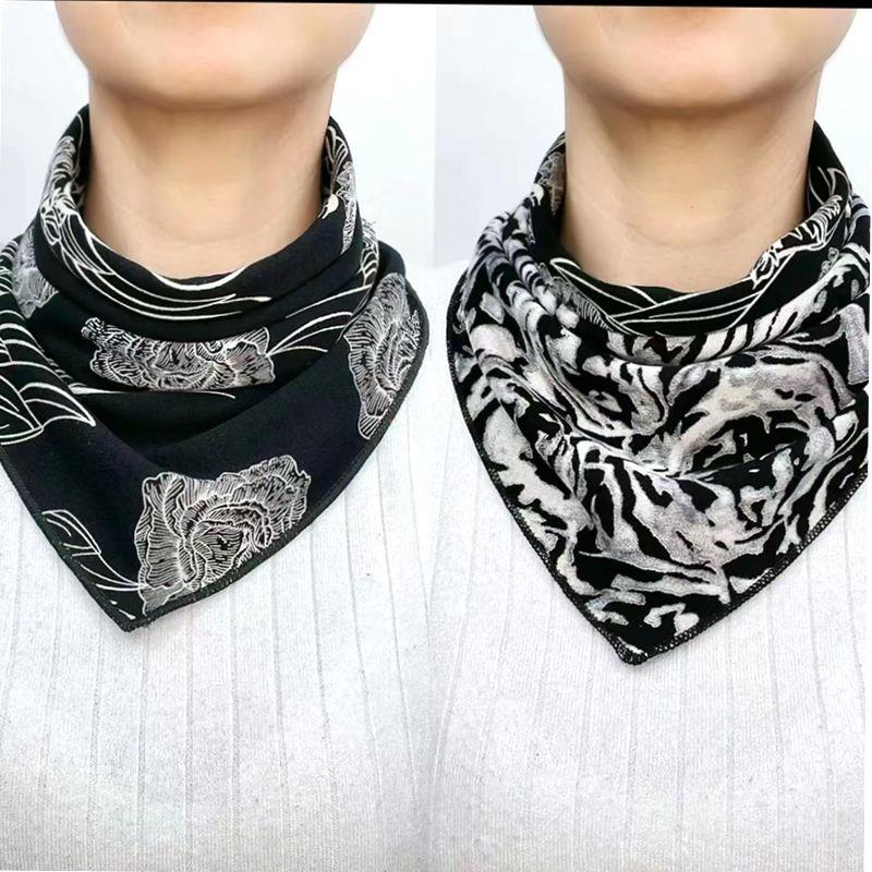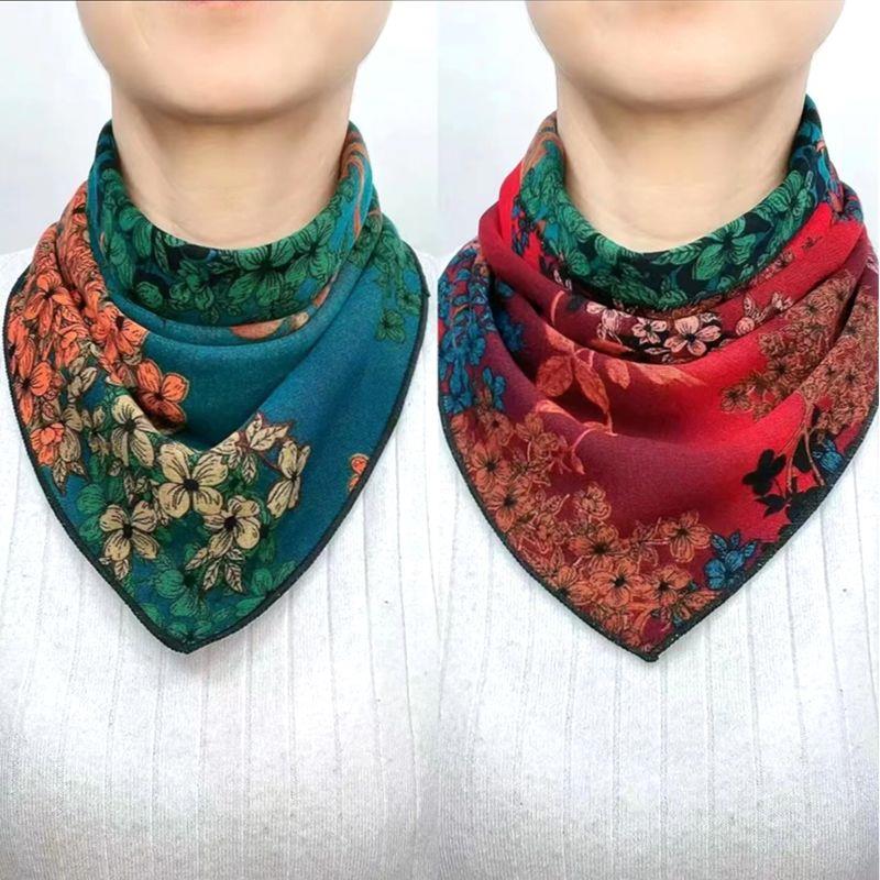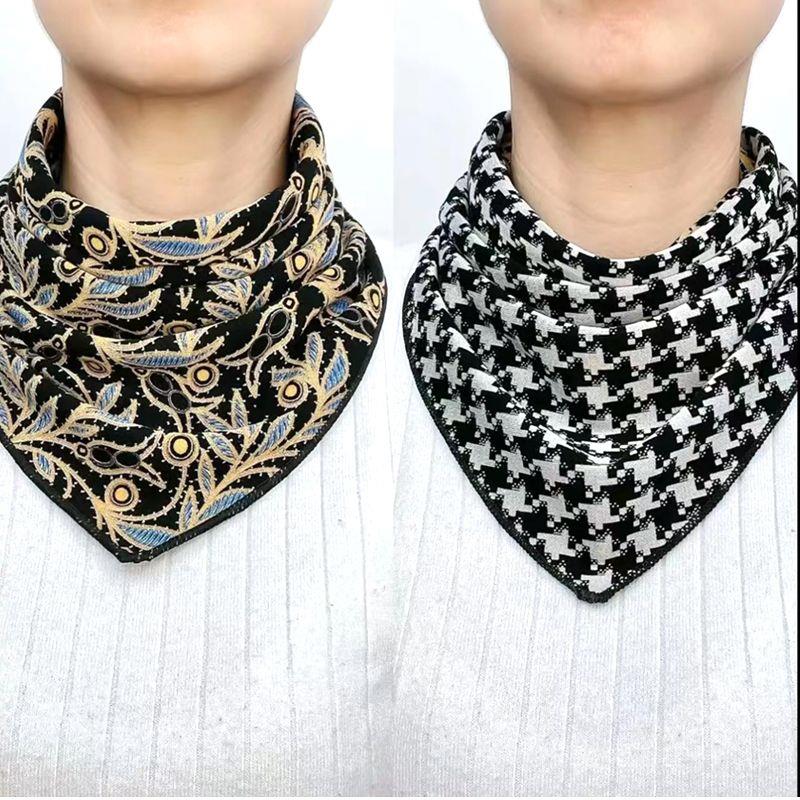 كمية Neck Warmer Women's Autumn Winter New Australian Wool Cotton Double-Sided Double Flower Triangle Scarf Warm Neck Protector Double-Breasted Scarf