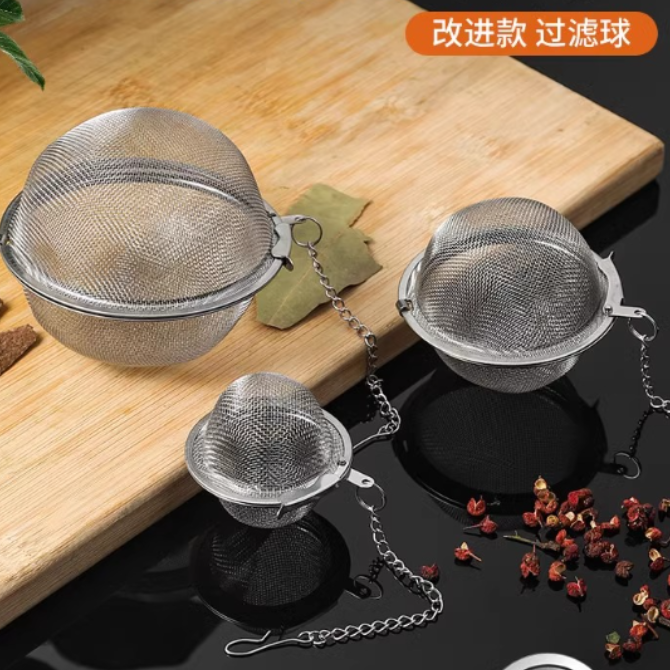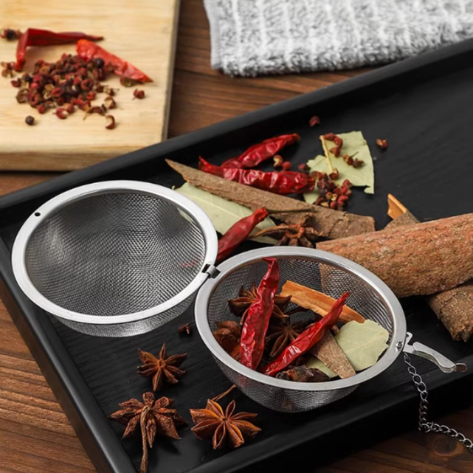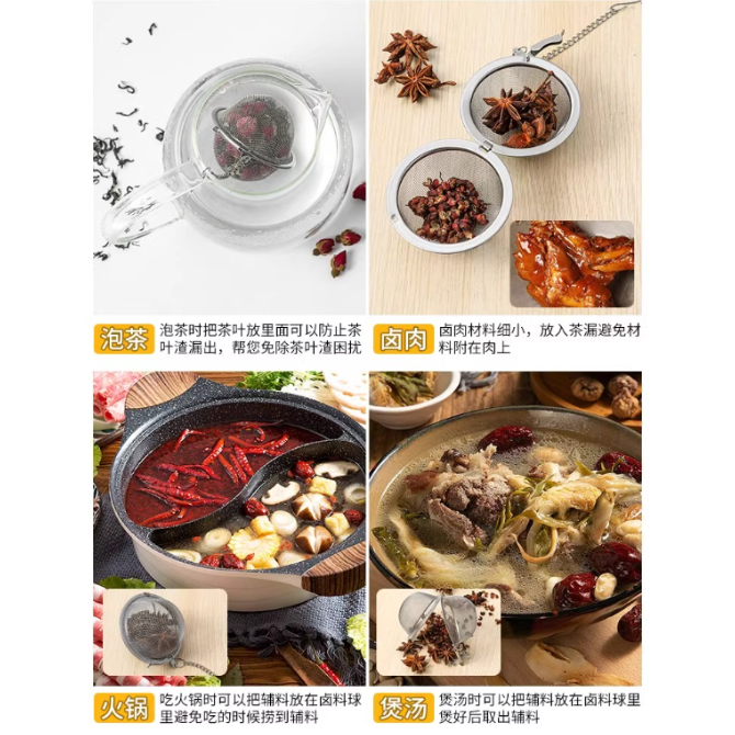 كرة توابل من الفولاذ المقاوم للصدأ 304 [مناسبة لسلق اللحم وطهي الحساء لتصفية الرواسب] كرة توابل - حقيبة متوسطة الحجم - 1 قطعة + حقيبة كبيرة - 1 قطعة