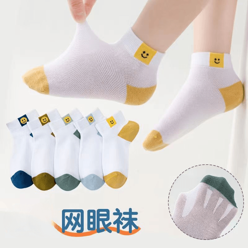كمية New Smiley Face Socks, Thin Summer Socks, Breathable Short Socks for Sports