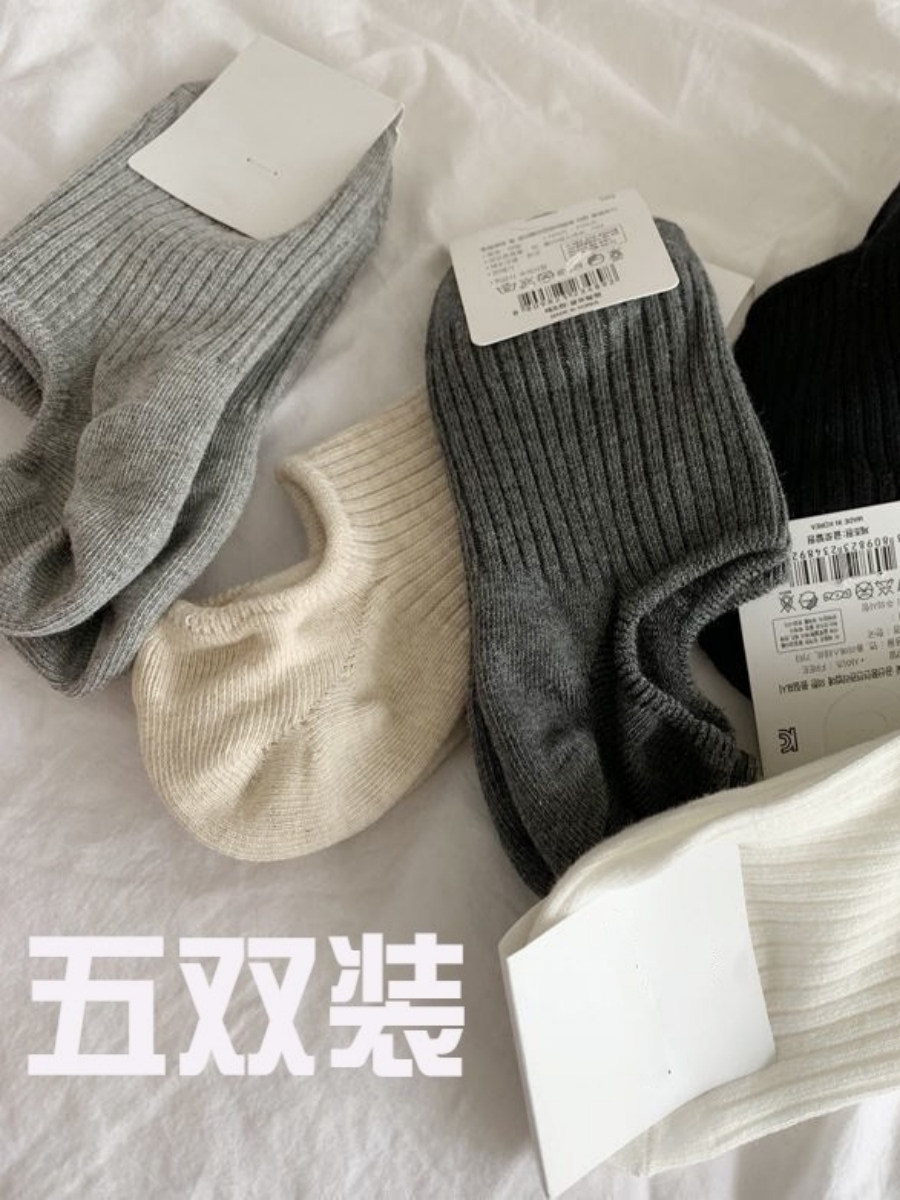 كمية New Style Short Socks Boat Socks Women Solid Color Retro Contrast Socks East Dae Gate Simple Boat Socks Unisex