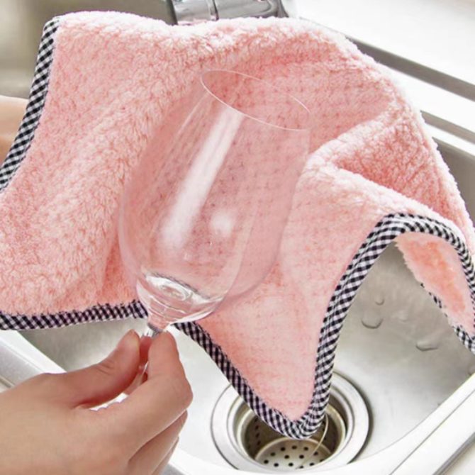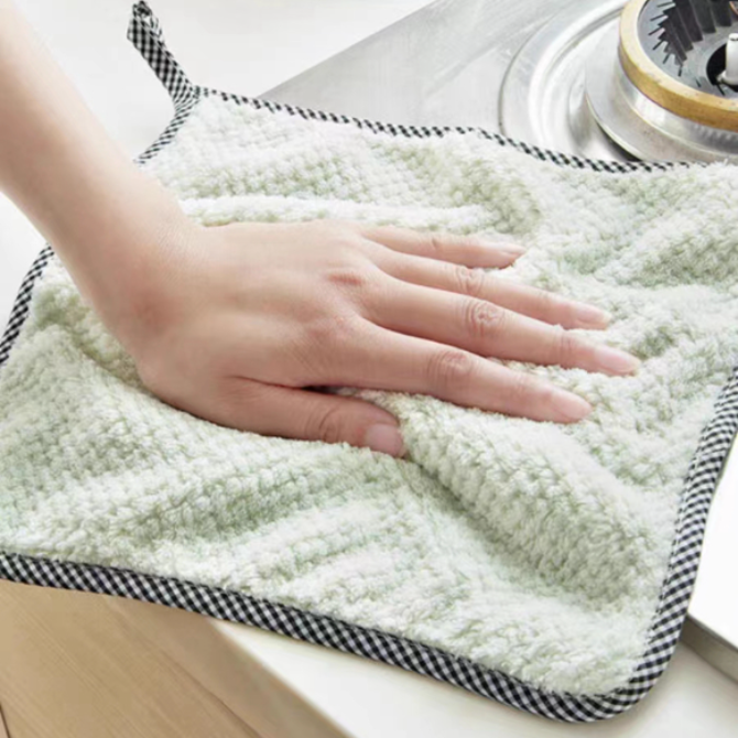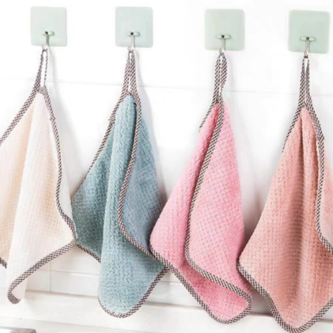 كمية Pineapple Check Edged Cloth Oil-Resistant Kitchen Dish Cloth Strong Absorbent Cleanable Coral Fleece Household Cleaning