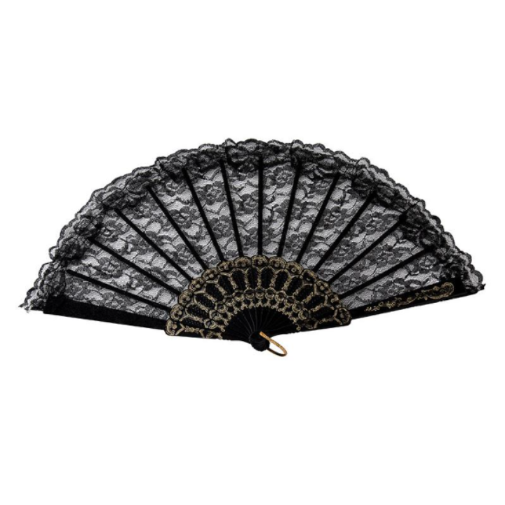 كمية Qipao with Fan, Ancient Style Folding Lace Fan, Ethereal Ancient Folding Fan for Fashion Shows and Dance