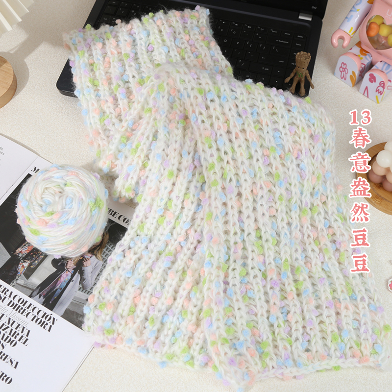كمية Rainbow Candy Colorful Bean Yarn Scarf Yarn Hand-knitted Mohair Icelandic Unisex Couple Style