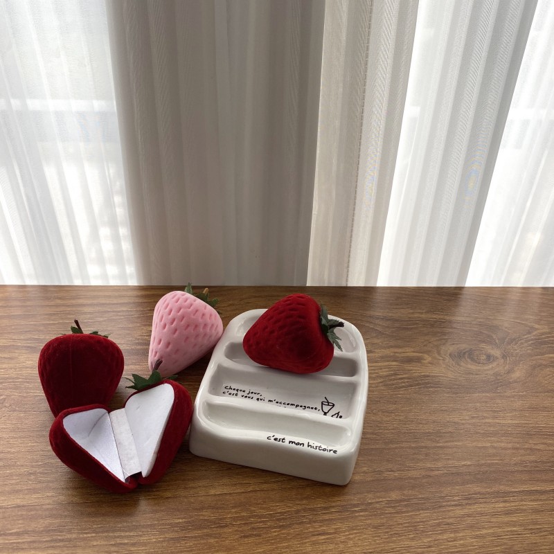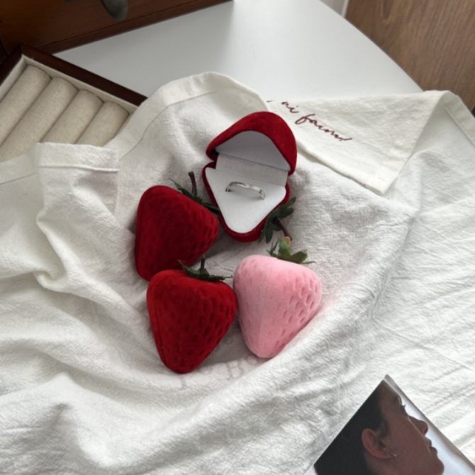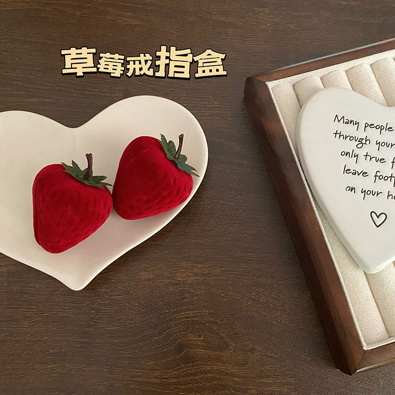 Retro Cute Girl's Heart-shaped Velvet Jewelry Storage Strawberry Ring Box quantity
