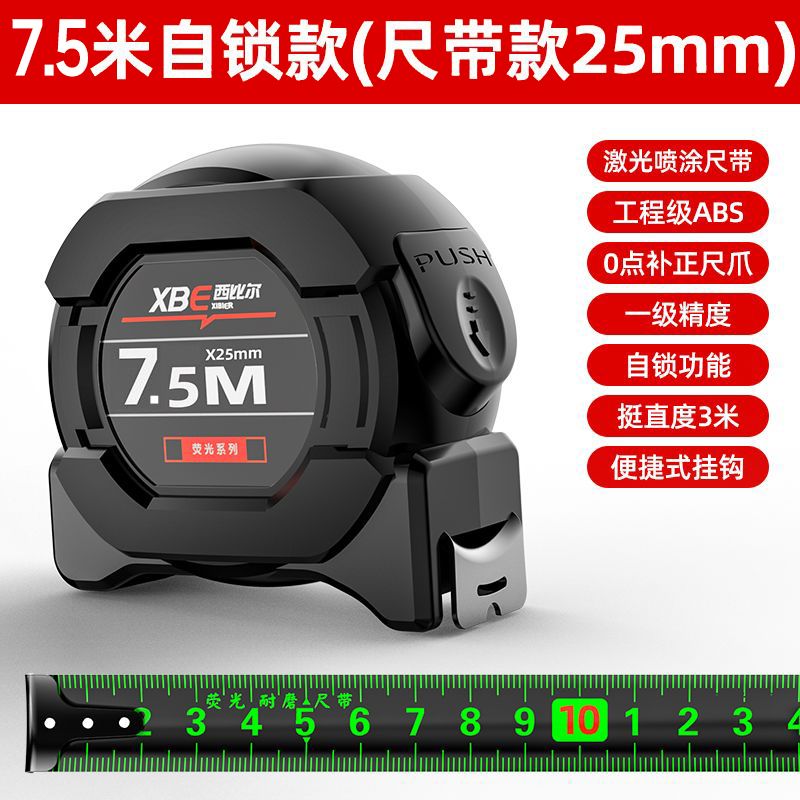 Self-Locking Fluorescent Steel Tape Measure, High Precision Laser Marked Black Gold Box Measuring Tool, 5m Wide Household Durable Tape quantity