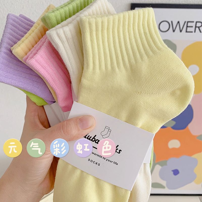 كمية Short Socks Solid Color Socks Women Pure Cotton Short Tube Socks Student Sports Casual Dopamine Trendy Candy Color Boat Socks
