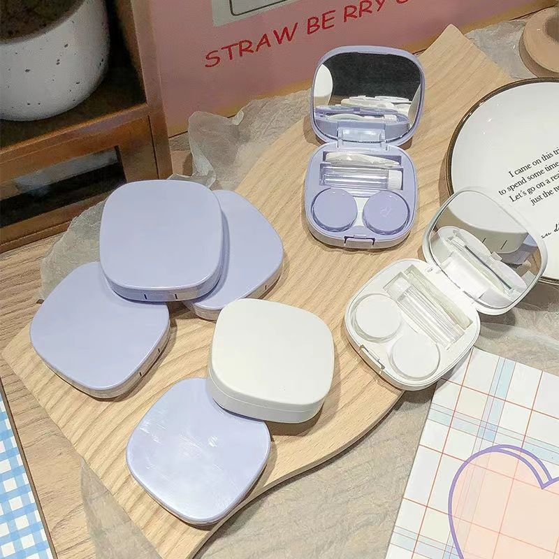 Simple Invisible Contact Lens Case Portable Compact with Mirror Leak-Proof INS Style Colored Contact Lens Storage Double Companion Box quantity