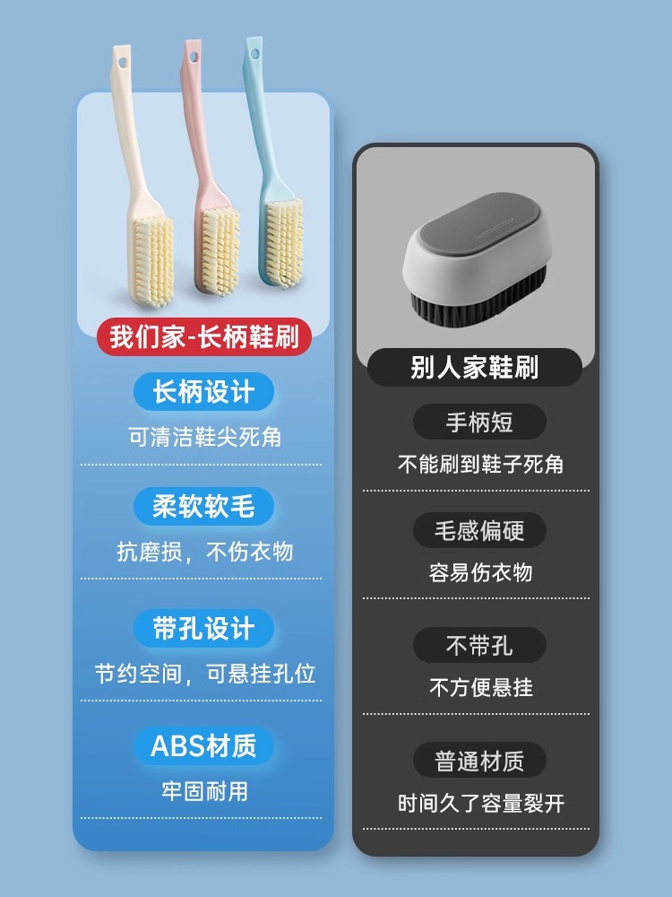 فرشاة أحذية منزلية بمقبض طويل - أزرق 1 + كاكي 1
