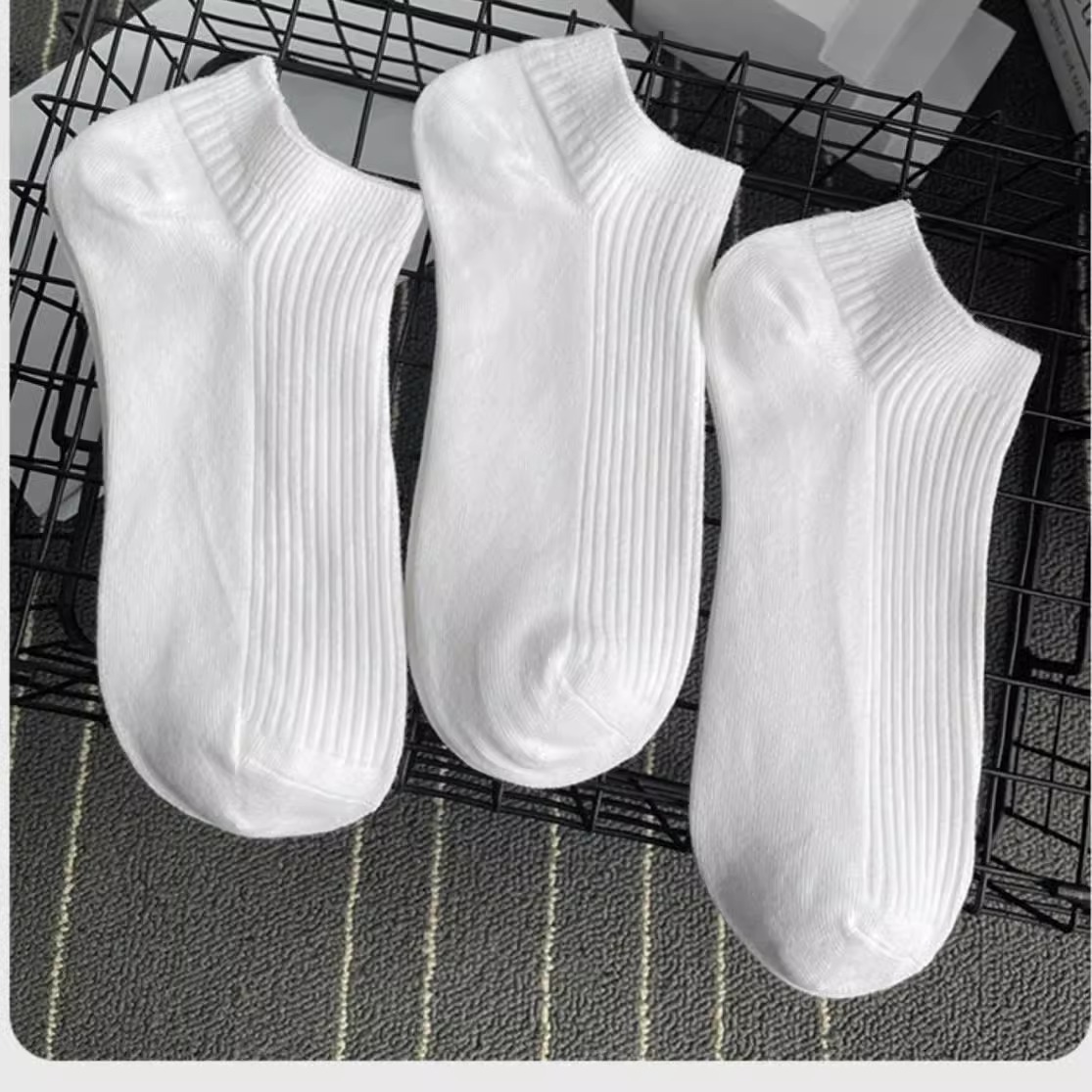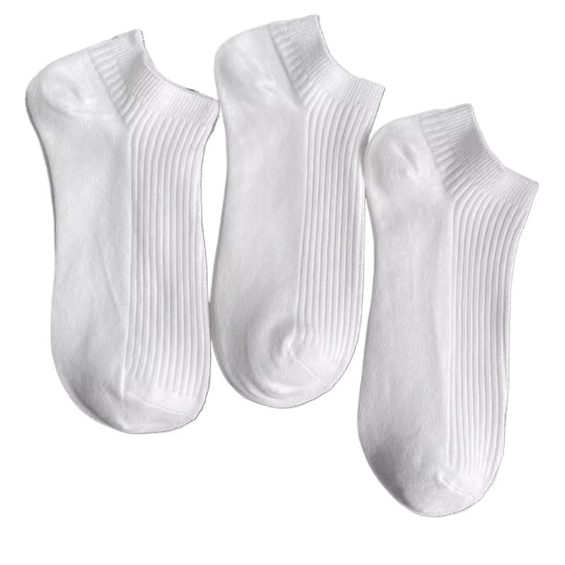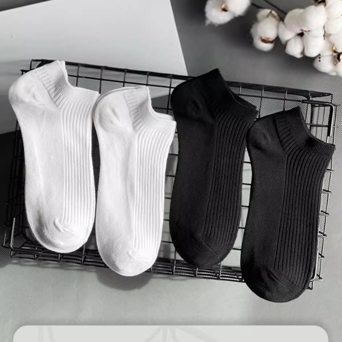 كمية Solid Color Socks for Men and Women Summer Thin Black and White Double-Needle Short Socks Spring and Autumn Sweat-Absorbing Shallow Cotton Socks Couple Boat Socks