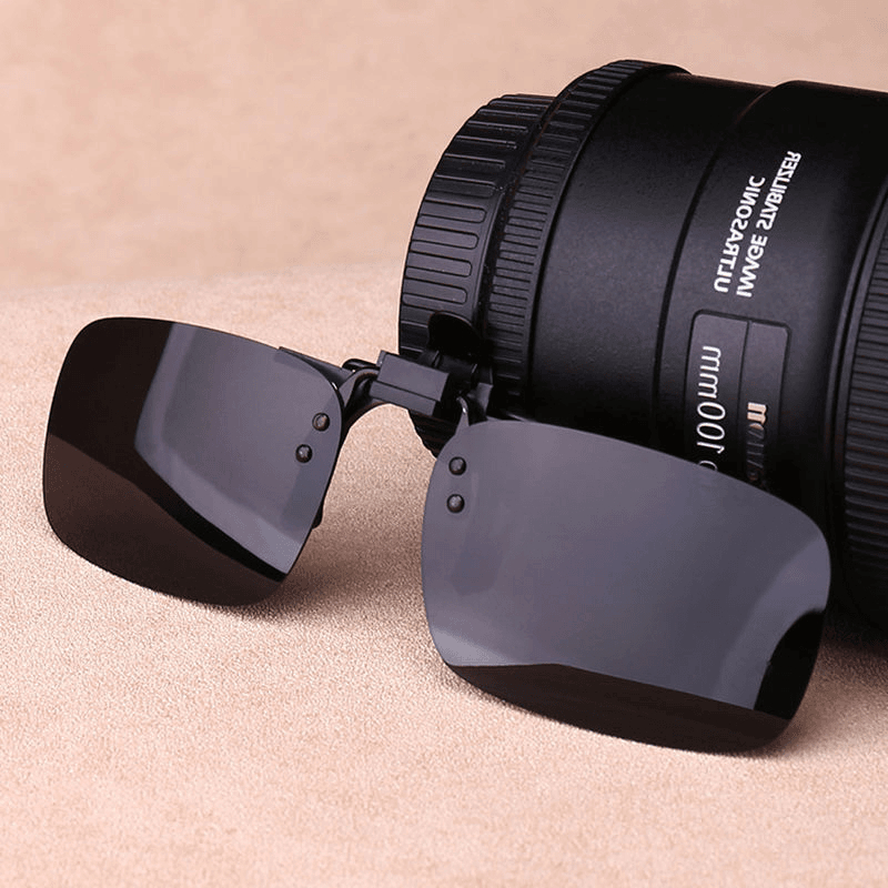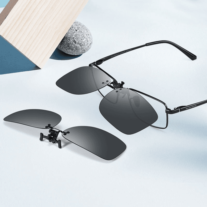 مشبك نظارات شمسية مربع - نظارات سوداء ورمادية (1 قطعة)