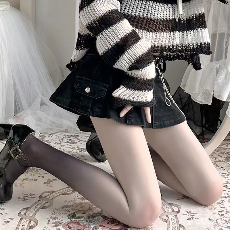 كمية Summer Gradient Color Stockings, Ultra-Thin Pantyhose for Women, Sexy Black Silk