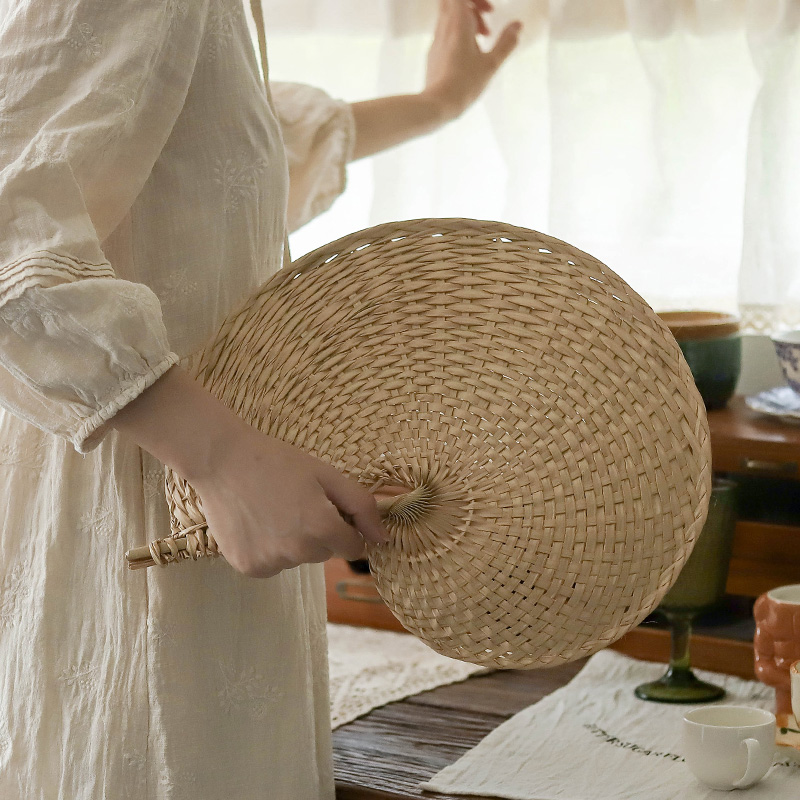 Summer Peach-Shaped Brown Leaf Fan Ancient Style Hand-Woven Cooling Fan quantity