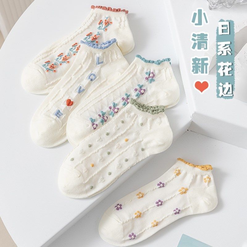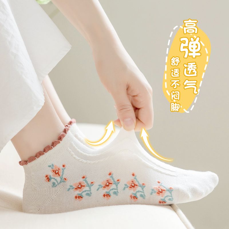 كمية Summer Women's Short Socks, Thin Shallow Mouth Boat Socks, Trendy Low-Cut Lace Socks