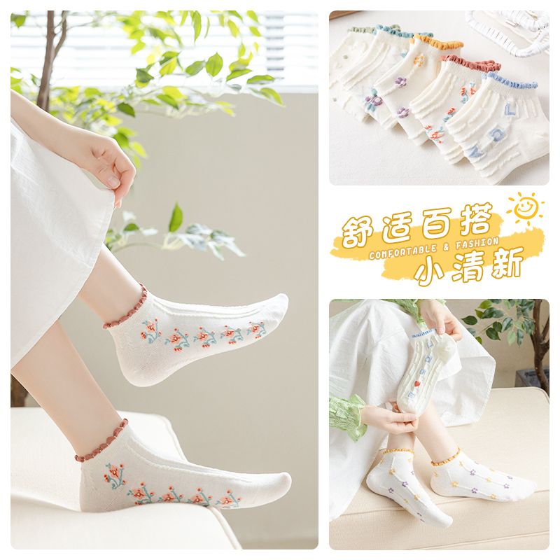 Floral Women's Short Socks (Size 34-41) Small Floral Boat Socks - Mixed Pack - 5 Pairs