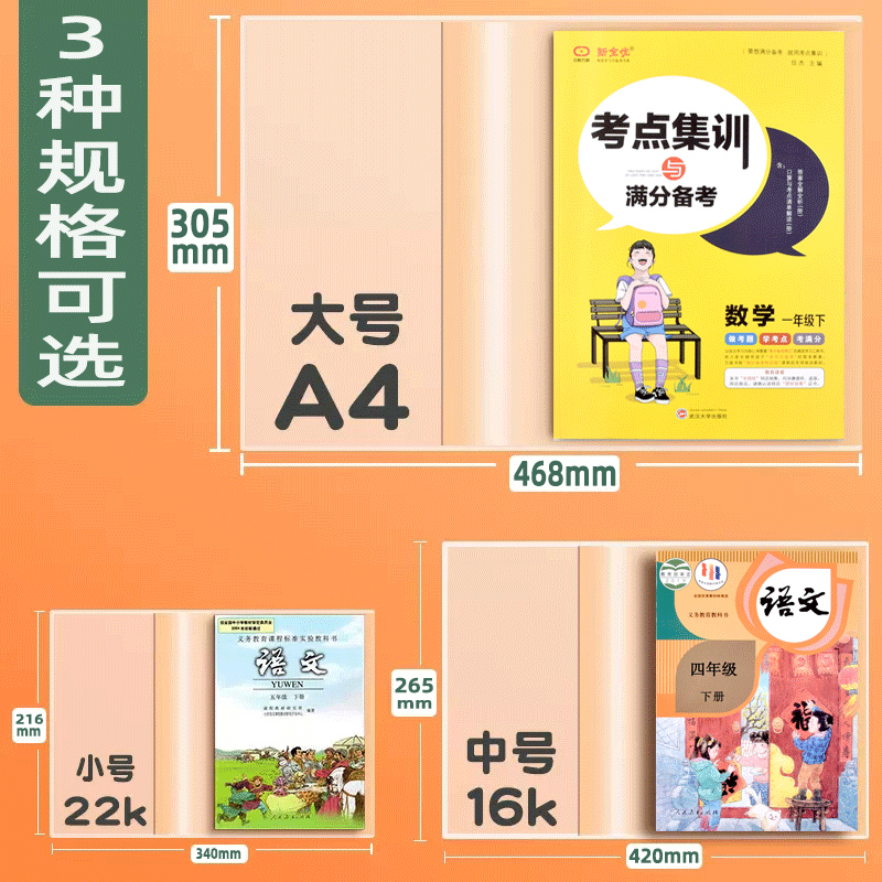 Thick Book Cover Transparent Book Sleeve for Elementary School Textbooks Homework 16K A4 Waterproof Book Cover Protection Film Large Size quantity