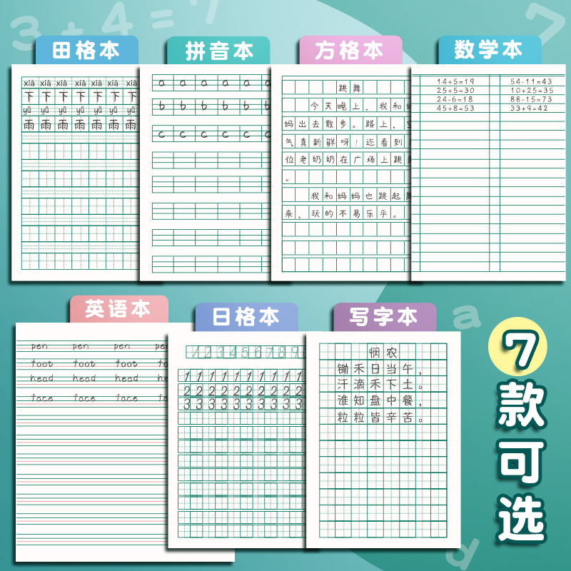 Thickened Exercise Notebook for Primary School Students, Grid Practice Book quantity