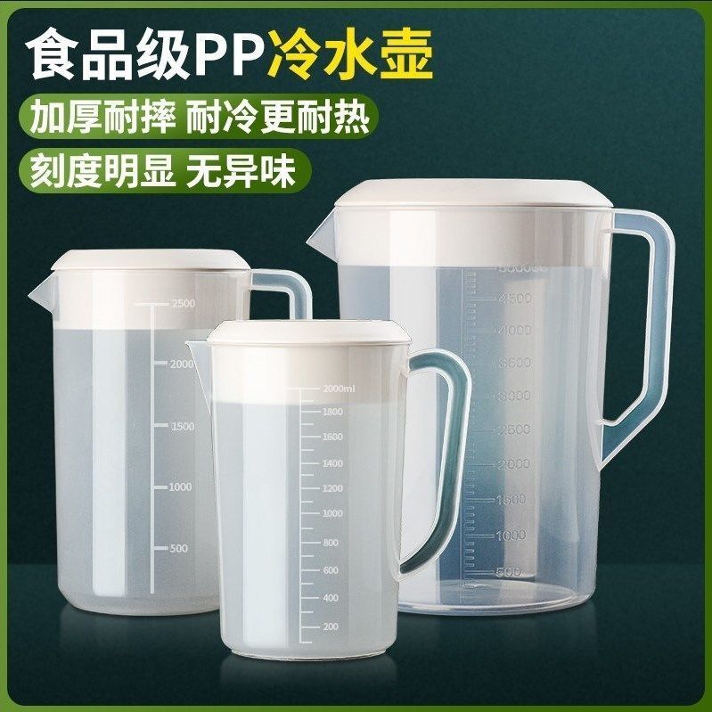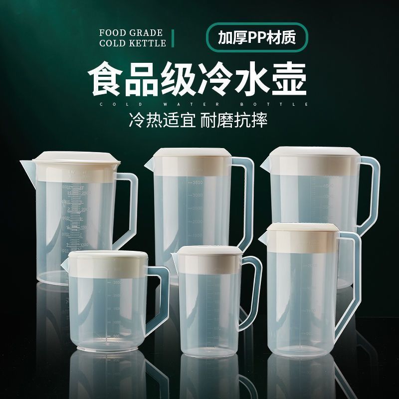 Thickened Plastic Cold Water Jug Extra Large Capacity Cool Boiling Water Jug High Temperature Resistant Household Milk Tea Shop Measuring Cup with Lid and Scale quantity
