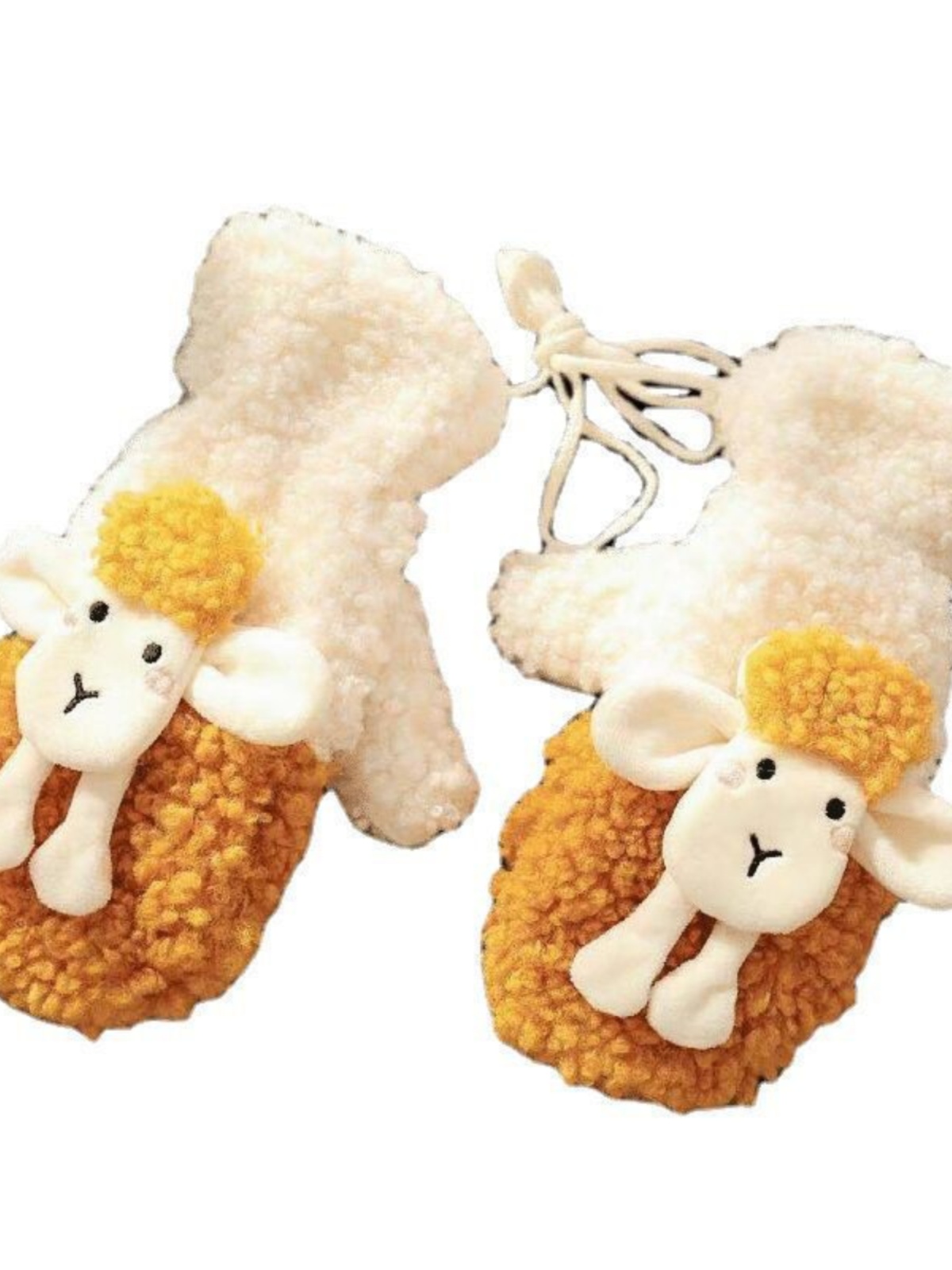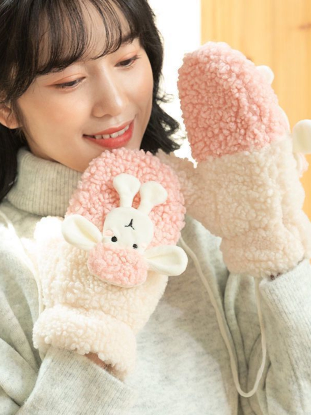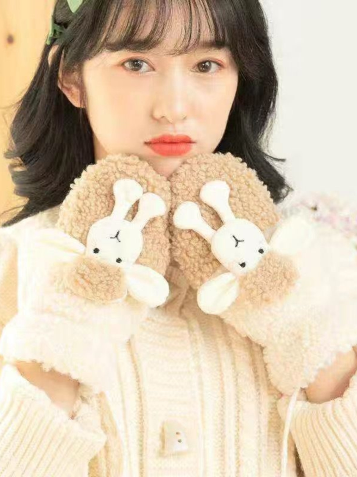 Unisex Thickened Fleece Lamb Fleece Cartoon Winter Student Warm Neck Bag Finger Cute Warm Gloves quantity