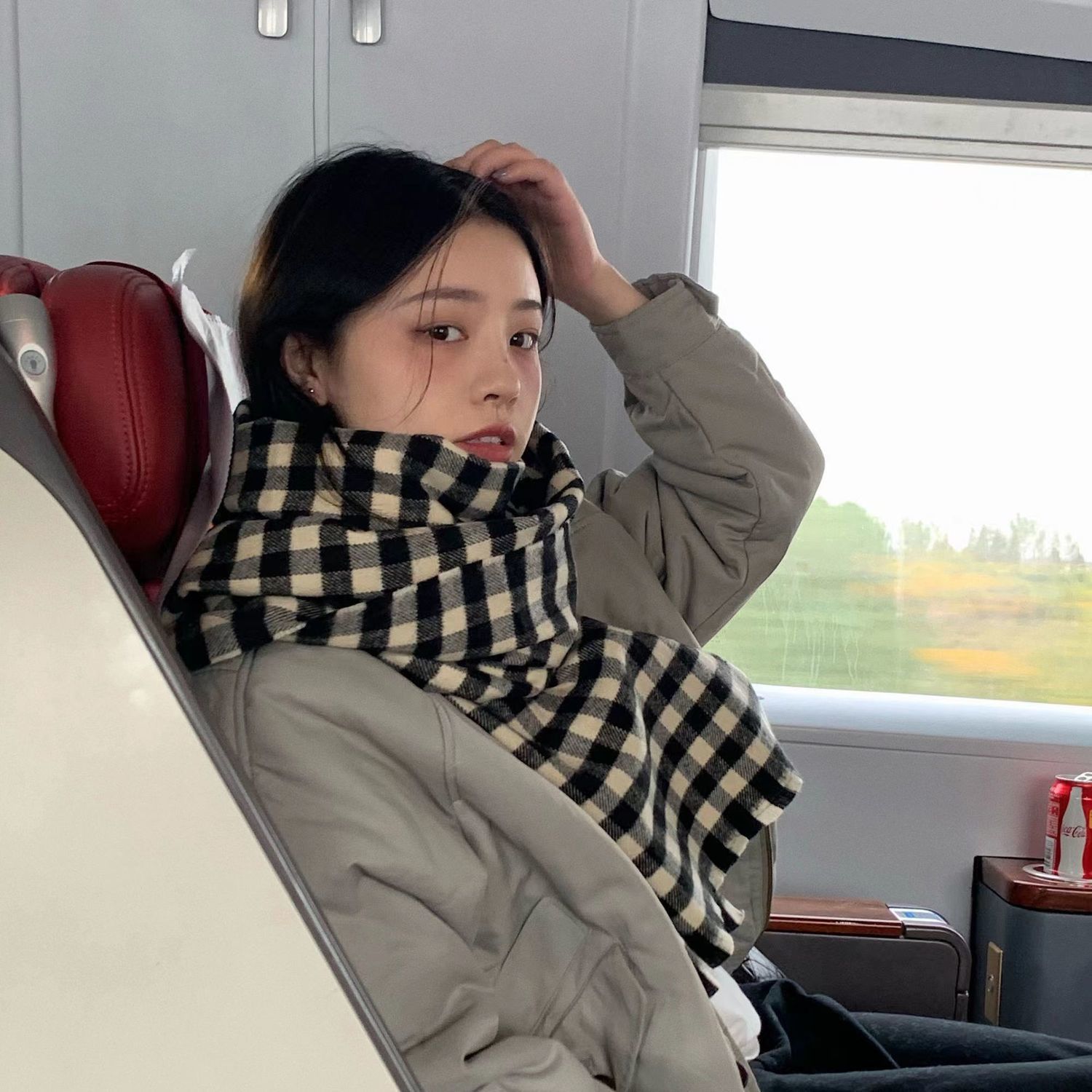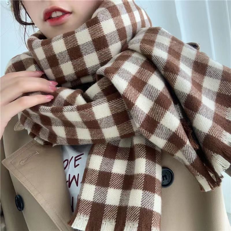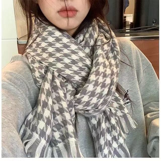 وشاح دافئ مزين بتطريز قلوب لطيف، شتوي، عصري، بنمط مربعات، مناسب للطلاب