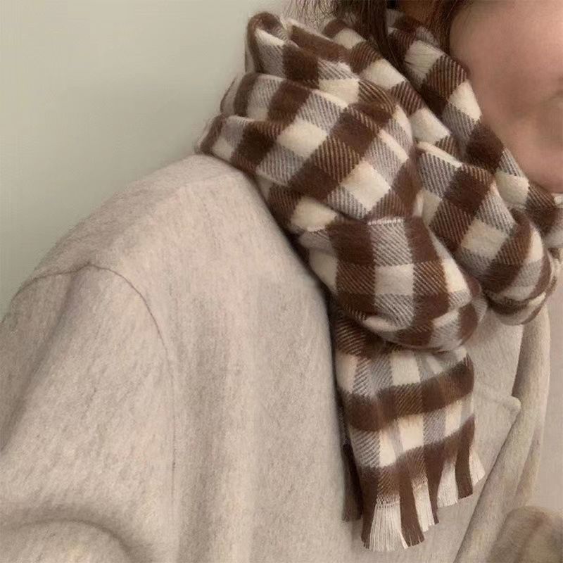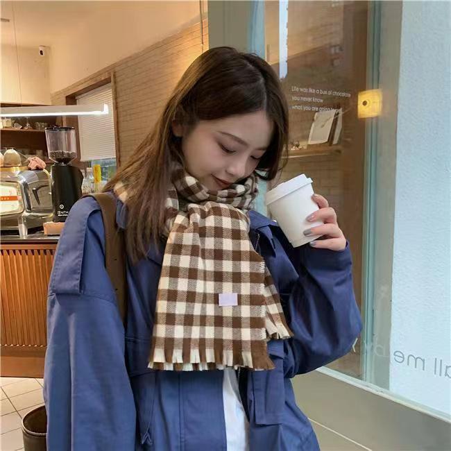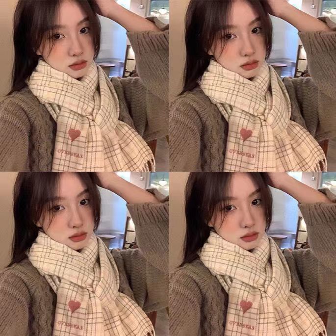 Warm Embroidered Heart Cute Tassel Scarf for Women, Winter Trendy Sweet Plaid Retro Neck Scarf, Korean Style, Versatile for Students quantity